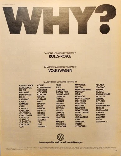 1972 Rolls-Royce Volkswagen Magazine Print Ad - Why?