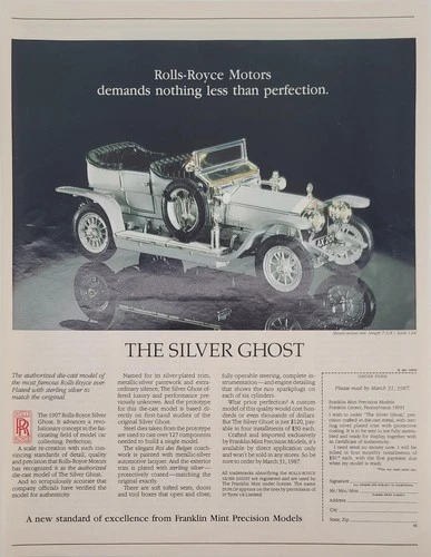 1987 Rolls Royce Motors Model Car Print Ad from Franklin Mint - Perfection