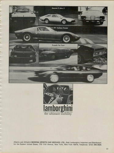 1972 Lamborghini Jarama 2 + 2 Miura SV Coupe Espada Ultimate VINTAGE PRINT AD