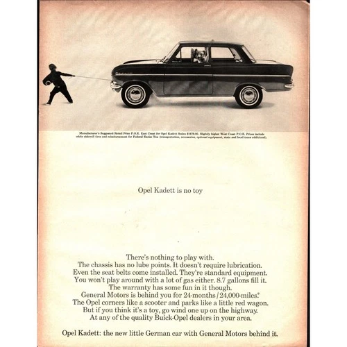 1964 Opel Kadett Car German Car Kid Pulling Car Vintage Print Ad nostalgic c1