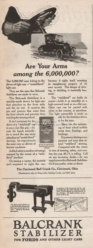 1920 Balcrank Stabilizer Cincinnati Ball Crank Fords and Other Light Cars Ad