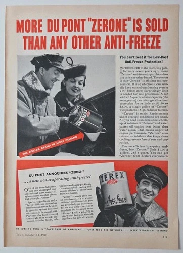 Vintage Print Ad More DuPont Zerone Is Sold Than Any Other Anti-Freeze Time 1940