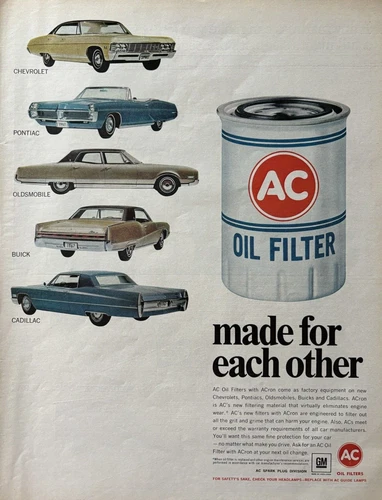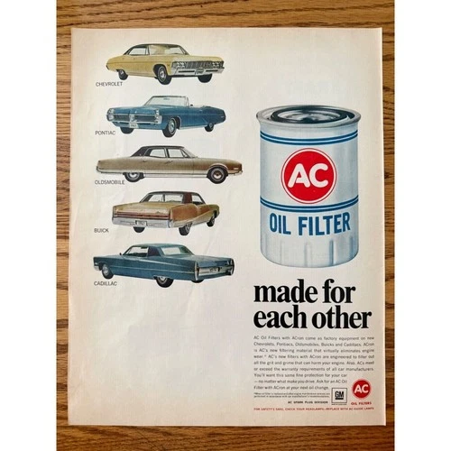 1967 AC Oil Filters Vintage Print Ad GM Cadillac Made For Each Other Chevrolet