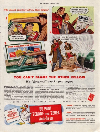 1944 DuPont Antifreeze Print Ad WWII Zerone Zerex You Can't Blame Other Fellow
