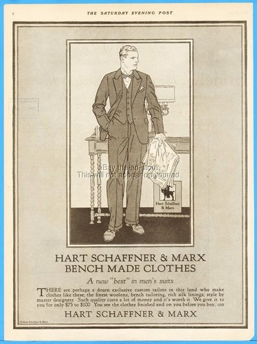 1925 Hart Schaffner & Marx Men's Suit Bench Made Clothes Vintage Clothing Ad