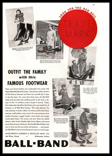 1936 Ball Band Boots & Shoes Mishawaka Indiana "Look For The Red Ball" Print Ad