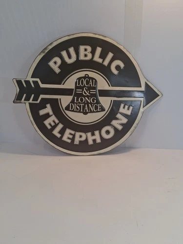Public Telephone Black & White Advertising Sign, Communication & Utilities
