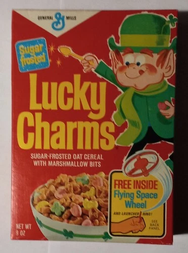 1970s Vtg LUCKY CHARMS cereal box UNOPENED w/ premium +case kids food ULTRA RARE