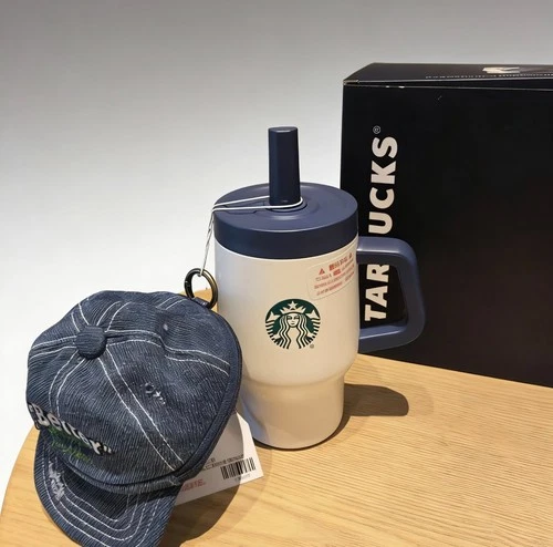 【NEW】Starbucks China 2026 Denim Star Coffee Retro 16 Straw Cup with Cap Pendant