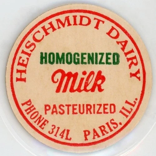 Milk Bottle Cap Insert - Heischmidt Dairy - Paris, IL (Illinois) - PHONE 314L