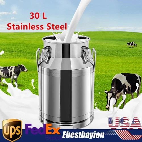 30 L Stainless Steel Milk Can Wine Pail Bucket Jug Oil Barrel Canister with Lid