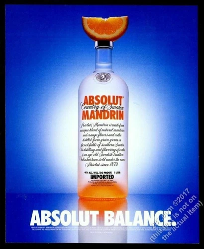 1999 Absolut Balance Mandarin vodka bottle with orange photo vintage print ad