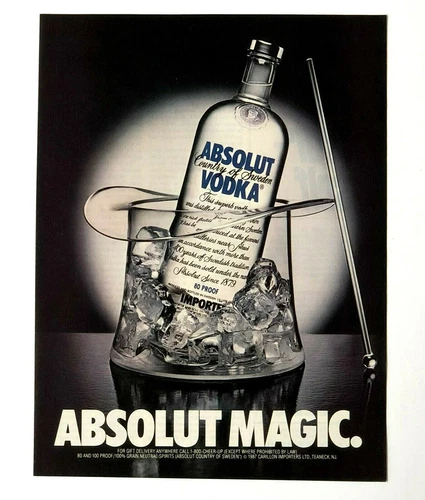 1987 Absolut Vodka Advertisement Magic Hat Ice Bucket Magician Wand Print AD