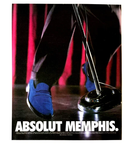 1999 Absolut Vodka Memphis Advertisement Microphone Blue Suede Shoes Print AD