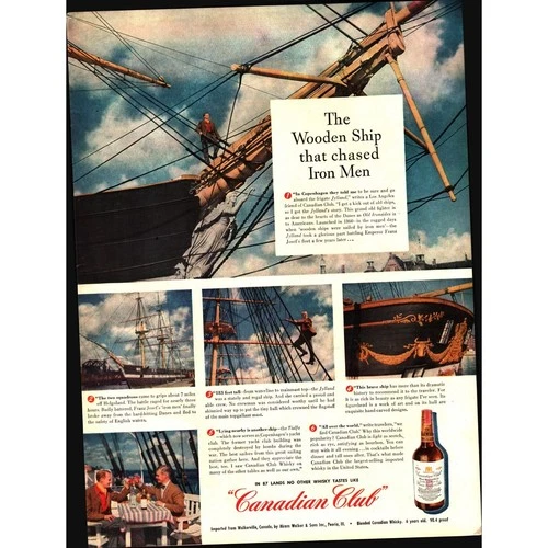 1947 Canadian Club Whiskey Wooden Ship That Chased Iron Man Vintage Print Ad d1