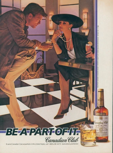 1985 Canadian Club Be Part Of It Couple Stylish Woman Pearls Hat Ad SI19