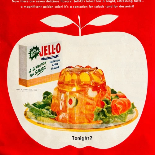 1955 Jell-O Gelatin Apple Advertisement Vintage Dessert Salads Snacks DWYY6