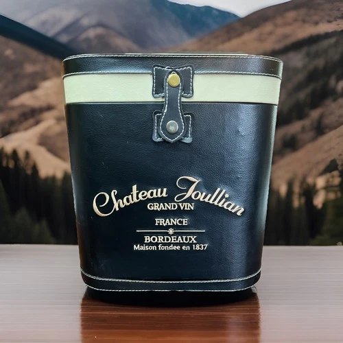 Vintage Chateau Joullian Bordeaux Wine Carrier Double Bottle Case Holder Handle