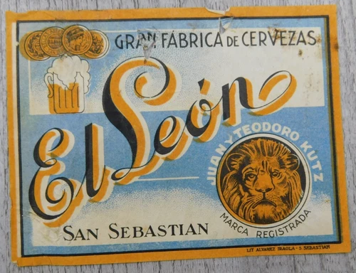 El Leòn San Sebastian Gran Fabrica de Cervezas Mexico Vintage Label Breweriana