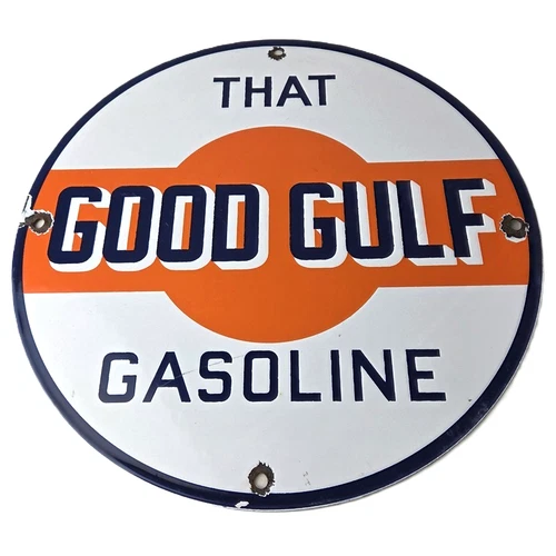 Vintage Good Gulf Gasoline Sign - Service Station Gas Pump Plate Service Sign