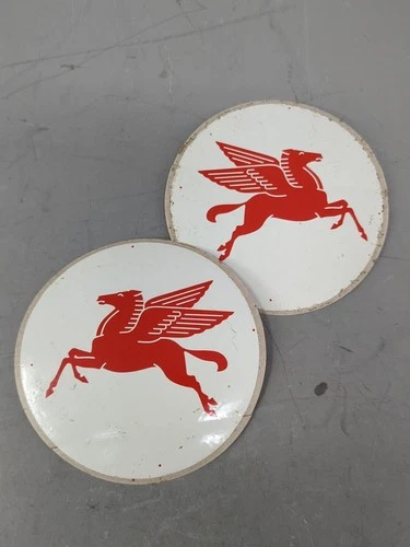 Vintage Red Pegasus Left Right Transfer Decal Pair Round Horse Gas Oil Sign Race