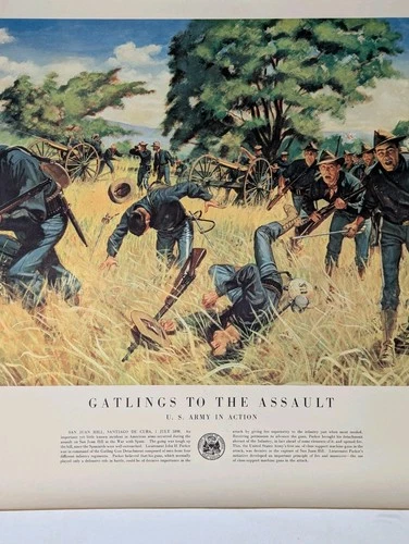 VINTAGE 1953 DEPT OF U.S. ARMY POSTER GATLINGS TO THE ASSAULT #21-46 VFW 1898