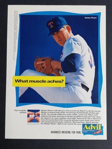 Advil Magazine Ad Nolan Ryan Baseball 1992 Muscle Ache Pain Relief