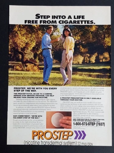 PROSTEP Magazine Ad Nicotine Transdermal System 1990s Stop Smoking Aid