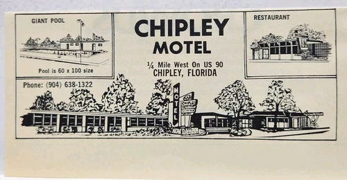 1972 Chipley Motel Florida US 90 Original Print Ad Retro 70s