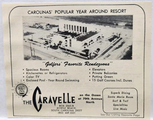 1972 The Caravelle Resort Hotel Myrtle Beach South Carolina Print Ad Man Cave