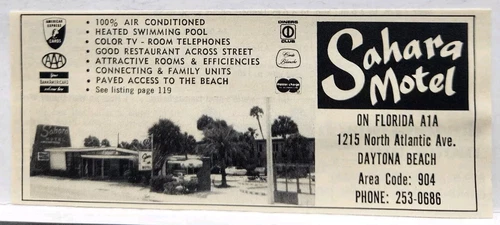 1972 Sahara Motel Daytona Beach Florida Atlantic Ave 5" Print Ad Man Cave