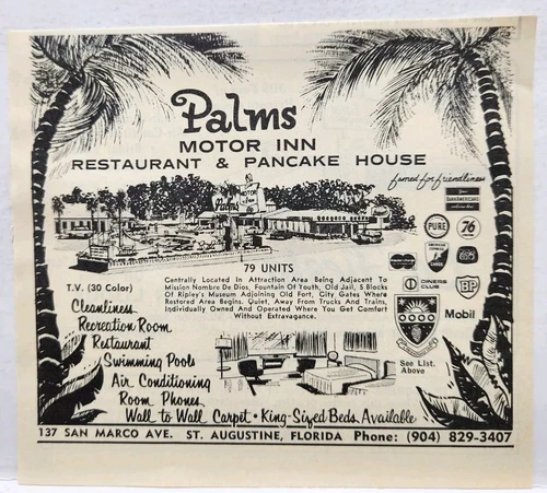 1972 Palms Motor Inn St Augustine Florida San Marco Ave Print Ad Man Cave