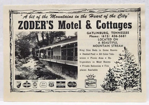 1972 Zoder's Motel & Cottages Gatlinburg Tennessee Original Print Ad Retro 70s
