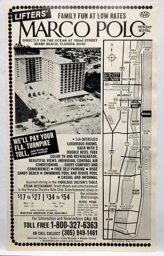 1972 Marco Polo Resort Hotel Lifters Miami Beach FL Florida Original Print Ad