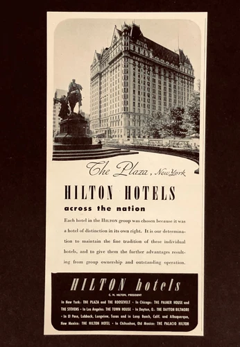 1946 Hilton Hotels Advertisement Plaza New York Real Photo Vintage Print AD