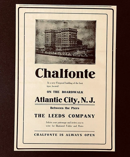 1906 Chalfonte Hotel Advertisement Atlantic City NJ Real Photo Antique Print AD