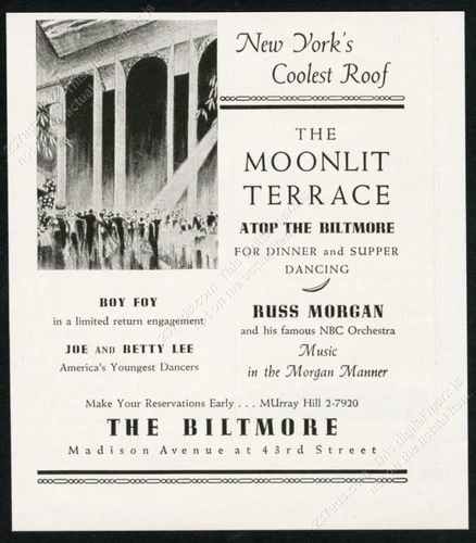 1936 The Biltmore Hotel NYC Moonlit Terrace supper club dancing vintage print ad