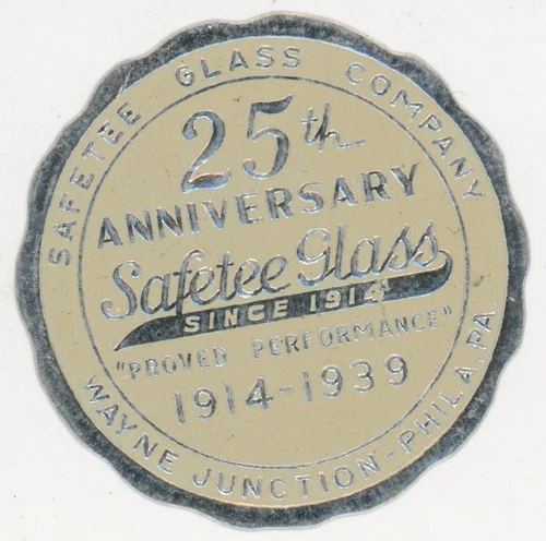 1939 Safetee Glass Co Wayne Junction, PA 25th Anneversity Foil Poster Stamp P102