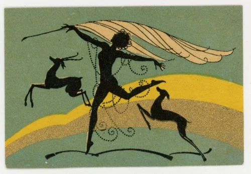 1920-30s Art Deco Eaquire? Deer Elk Dancer Poster Stamp P102