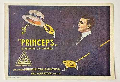 c1930s ITALY Princeps Hat Print Ad Il Prihcipe Dei Cappelli Sagliand Micca