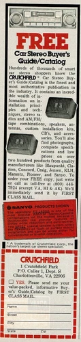 1979 Vintage Print Ad Crutchfield Free Stereo Buyer's Guide / Catalog Sanyo