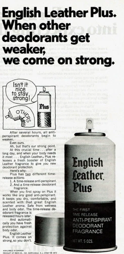 1972 Vintage Print Ad English Leather Plus When other deodorants get weaker we
