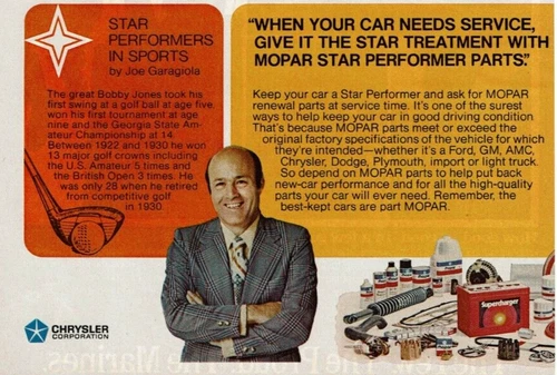 1977 Vintage Print Ad Chrysler Star Treatment Mopar Joe Garagiola Bobby Jones