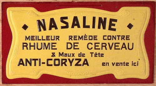 c1920s Nasaline Best Headache Remedy FRENCH Embossed Thick Cardstock Sign