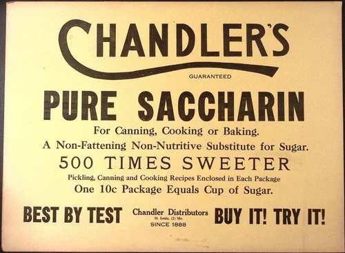 Chandler's Famous Medicines Saccharin for Canning Baking Cardstock Store Sign