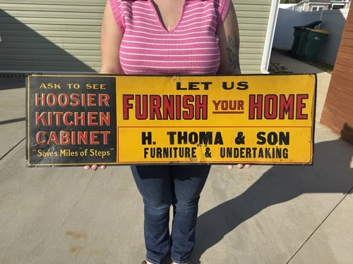Antique Original Hoosier Cabinet Sign Furniture Undertaking Bluffton Indiana