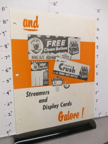 ORANGE CRUSH soda bottle 1960 store display sign poster clown balloon premium