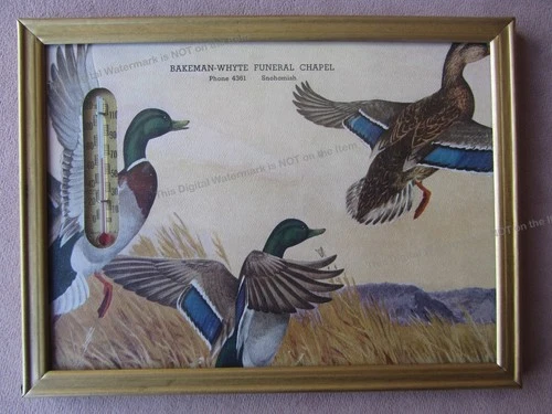 Vtg Framed Wall Thermometer Bakeman-White Funeral Chapel Mortuary Snohomish WA
