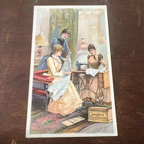 Antique Victorian Trade Card Domestic Sewing Machine Co Ladies & Maid New York