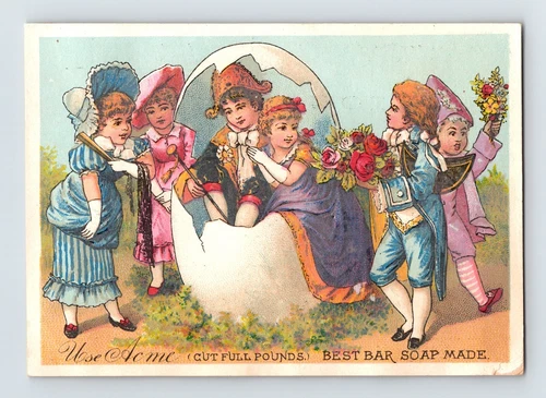Acme Bar Soap 1890s Victorian Trade Card Children Egg Fantasy 3 x 4